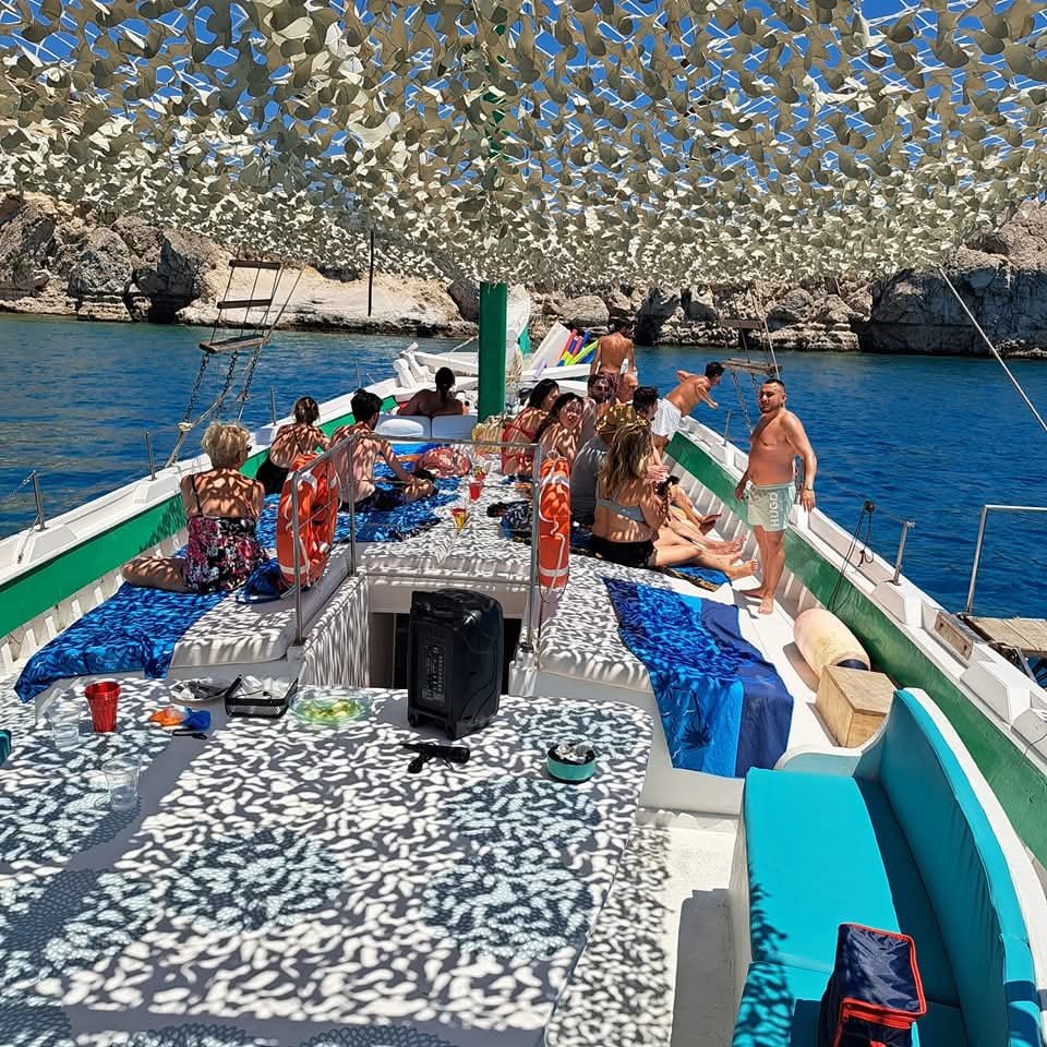 Step aboard Rhodes' iconic red boat for a relaxed start. Swim, explore, cool off & end at Anthony Quinn Bay.